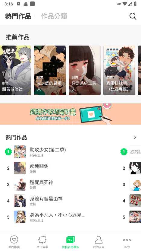 webtoon漫画苹果版即webtoon台版漫画app,支持中文版和英文版等多种语言,因为大陆区暂时没上线,中文版只有台湾地区版本;作为韩国知名漫画平台webtoon的国际版本漫画app,内置了繁体中文语言,方便你浏览最新的漫画内容,使用方便并且内容多样,丰富的授权作品供你阅读,更好的体验漫画的乐趣,你还在等什么呢,赶快来下载试试吧!